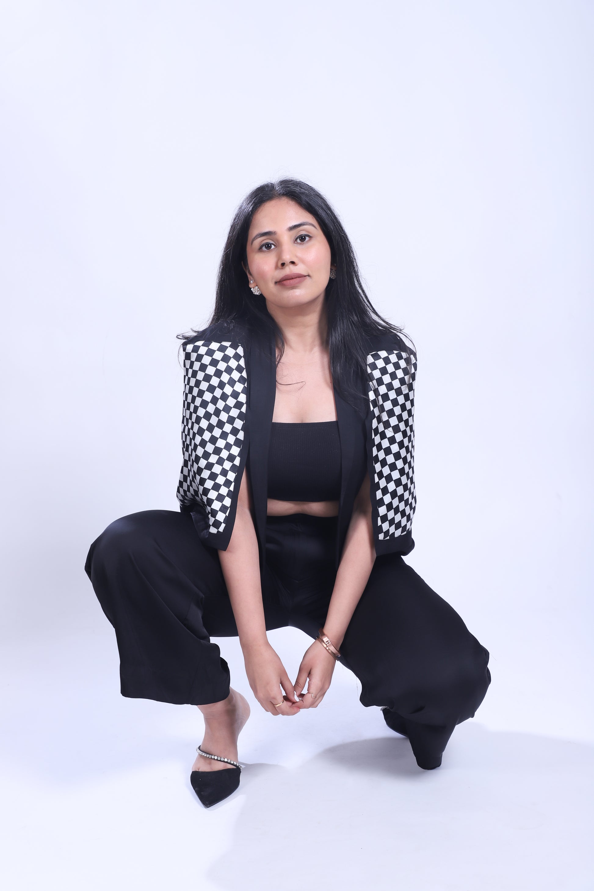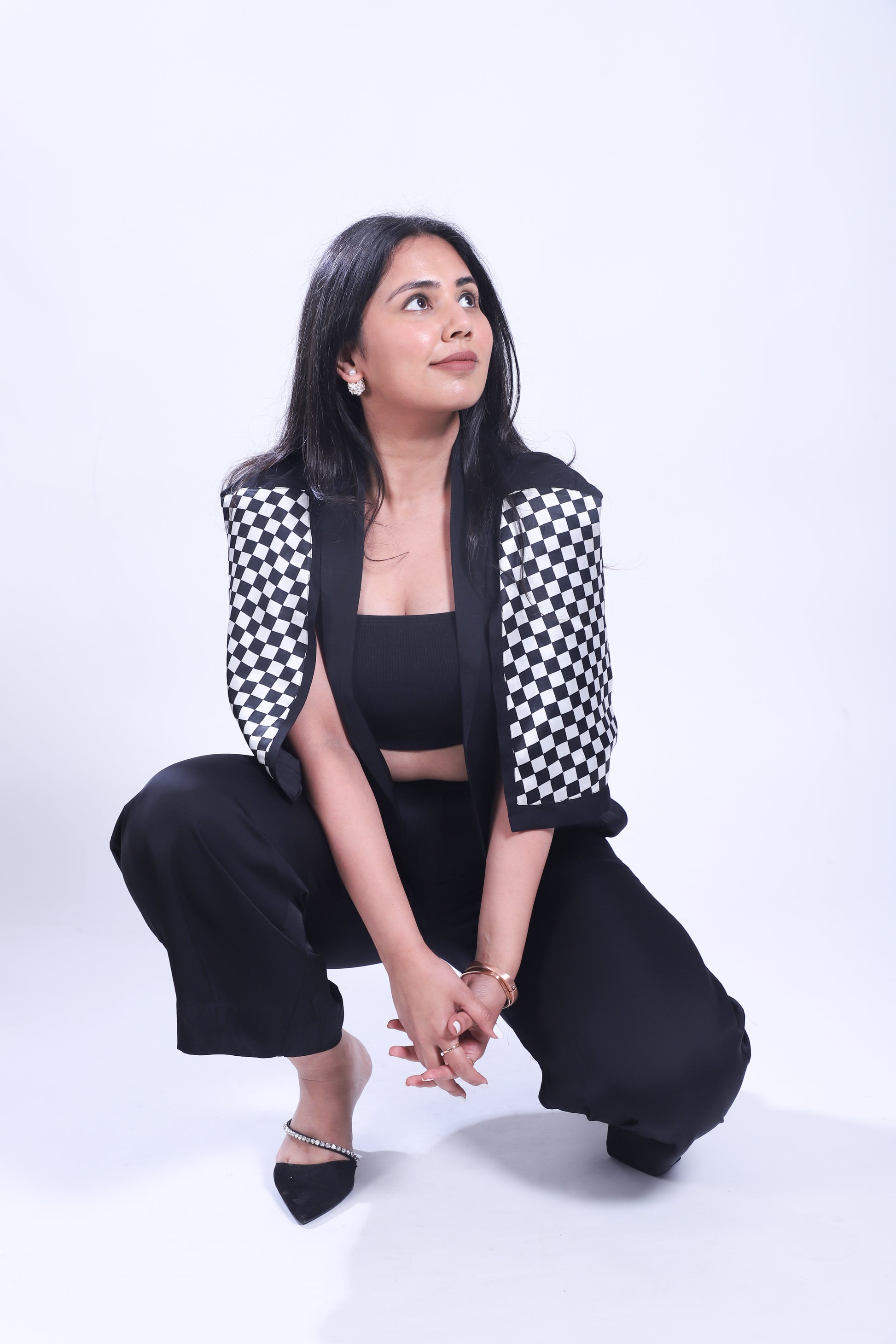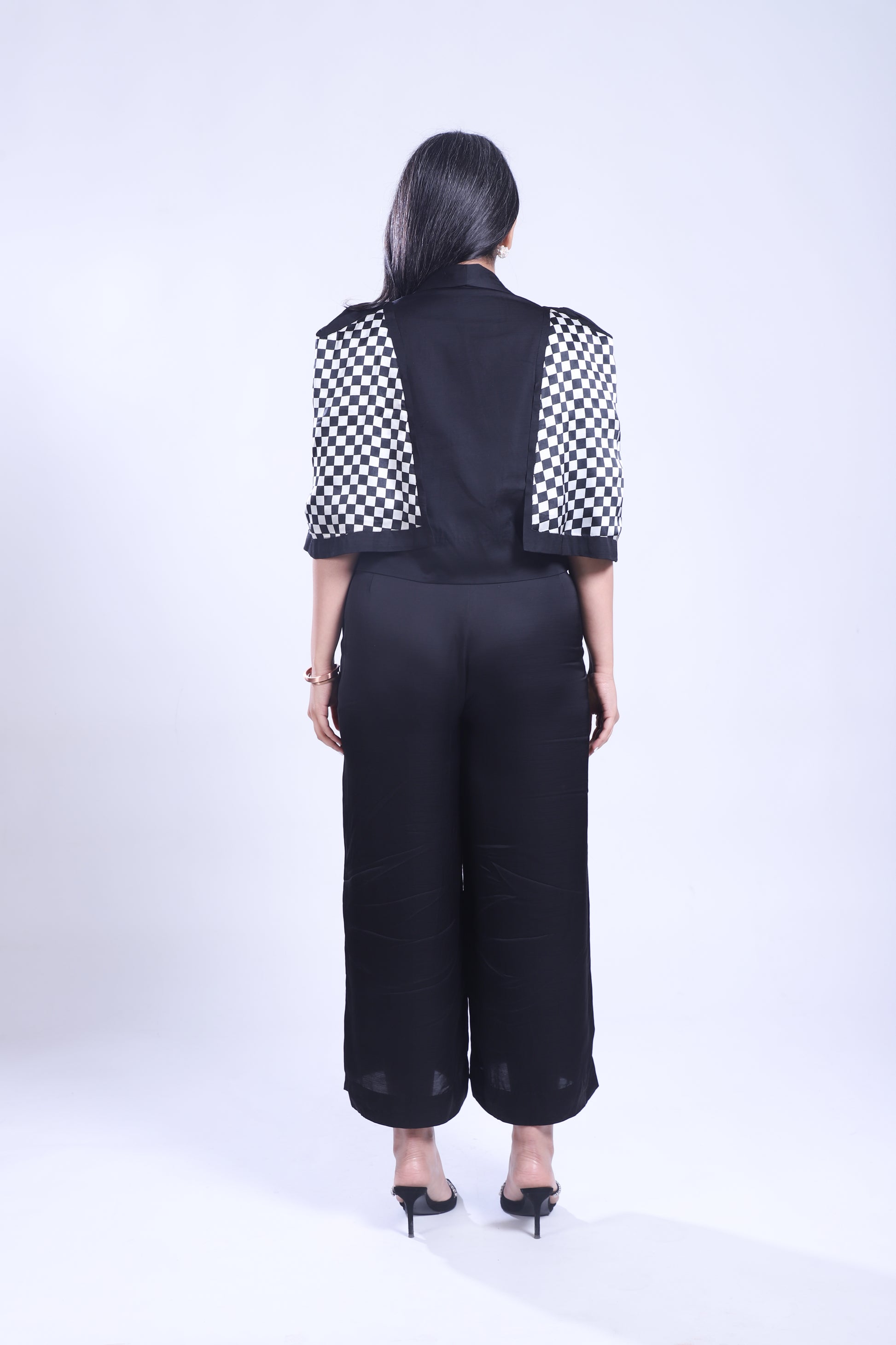 Looking luxurious doesn't have to come at a cost! This co-ord set is a testimony of that! Slay graciously in our cape jacket set with a classic printed flap on the jacket. Ready to rule the world ?!