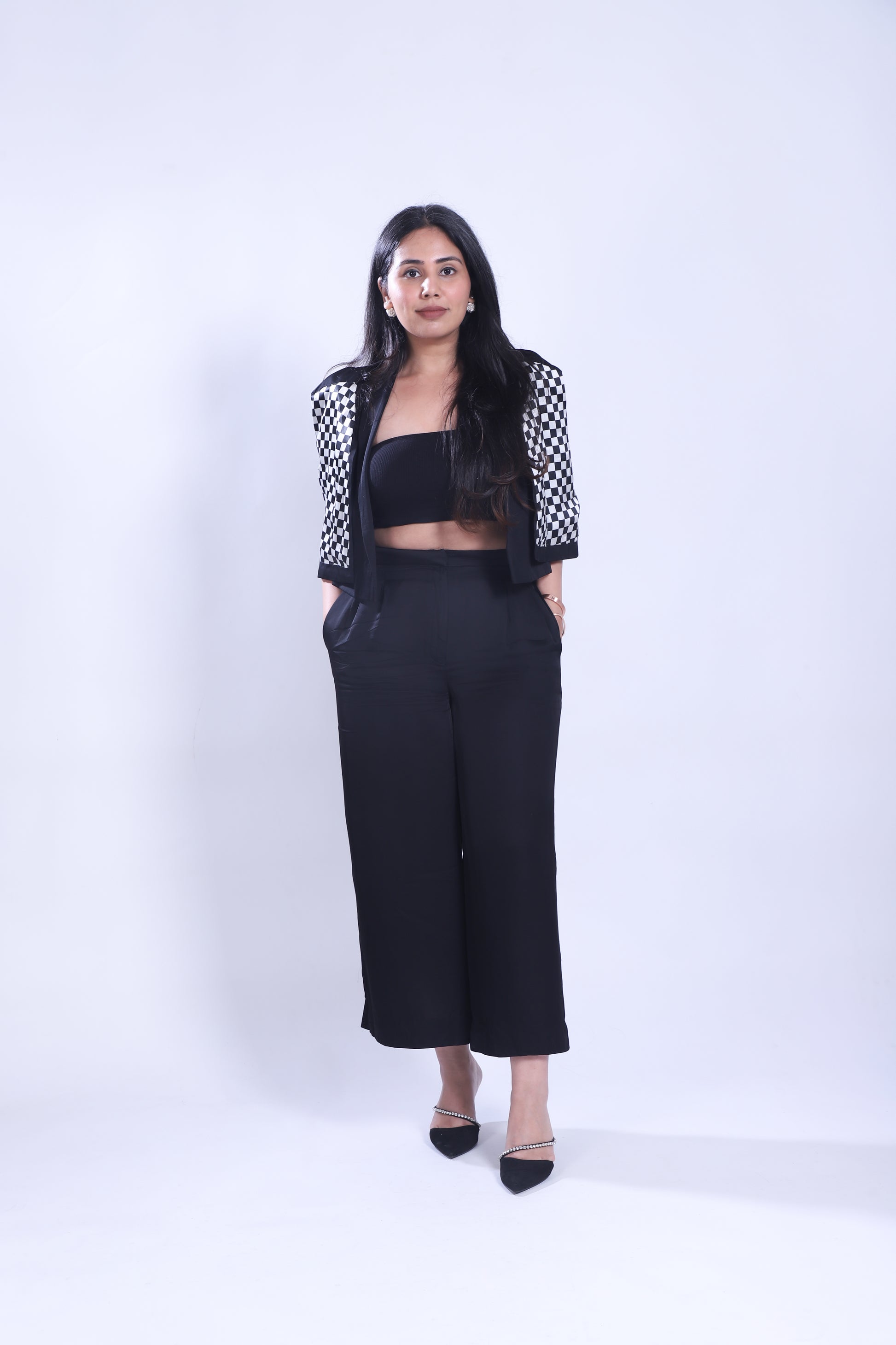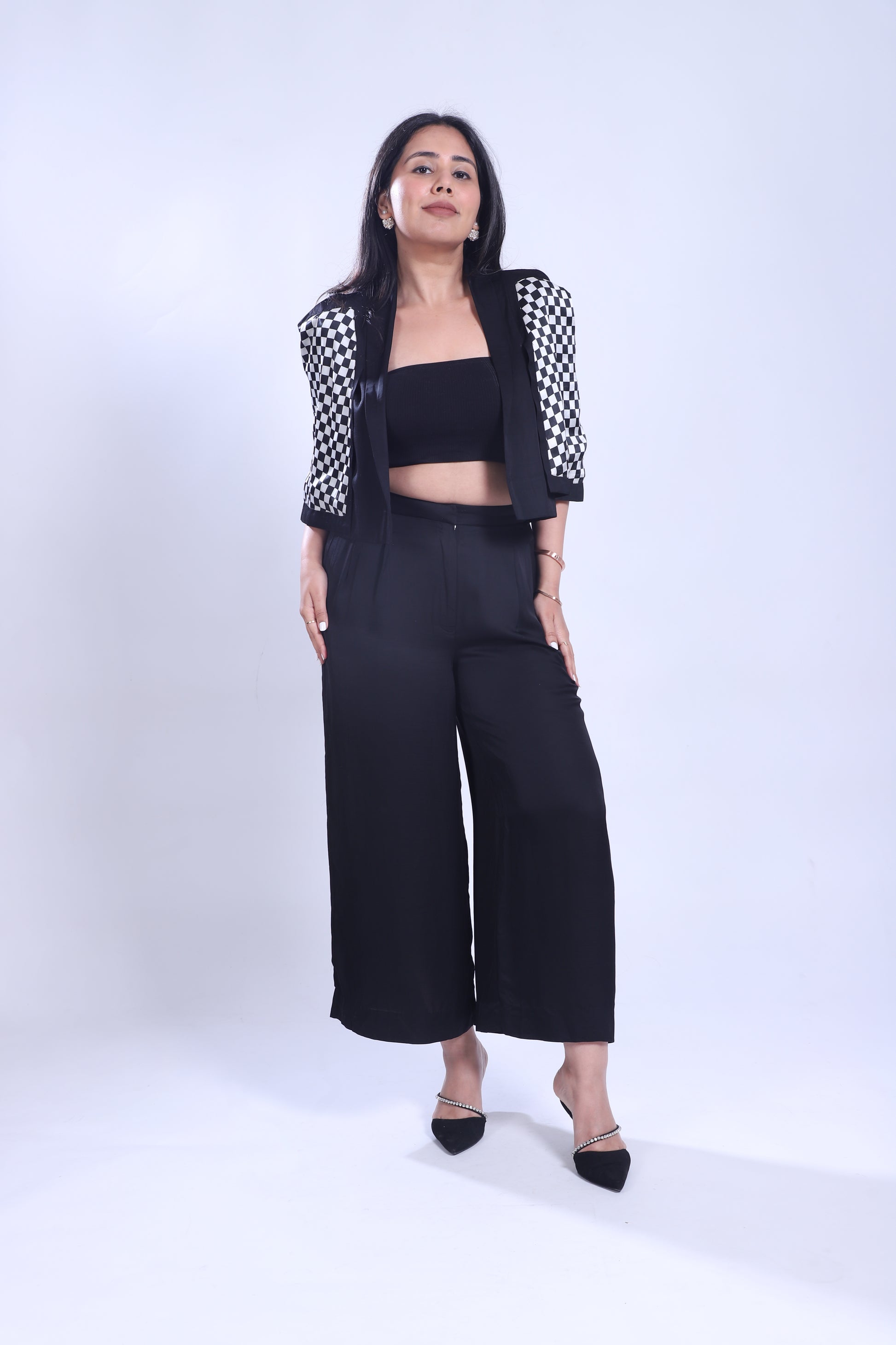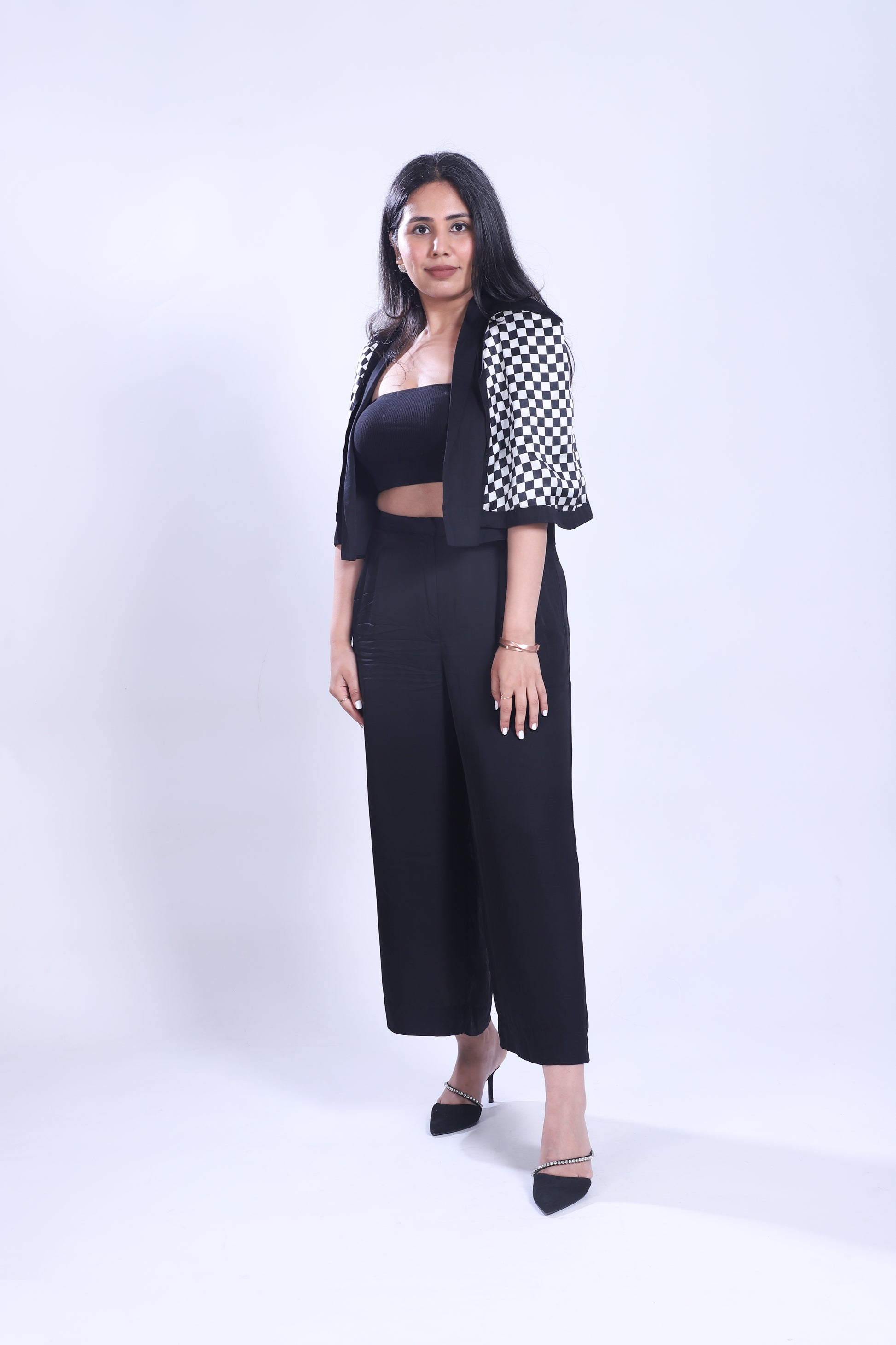 Looking luxurious doesn't have to come at a cost! This co-ord set is a testimony of that! Slay graciously in our cape jacket set with a classic printed flap on the jacket. Ready to rule the world ?!